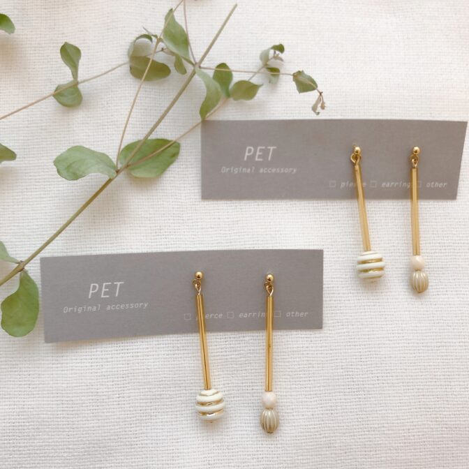 ハンドメイドアクセサリーショップ|PET PETでは主張しすぎず、かつ個性のあるハンドメイドアクセサリーを制作・販売しております。使ってくださる方のお気に入りのアイテムになりますように。そんな想いを込めて、一つ一つ丁寧に作っております。主にフランスやトルコなどインポートのビーズやガラスを使用し、アンティークな風合いや上品さが際立つアイテムを取り揃えております。